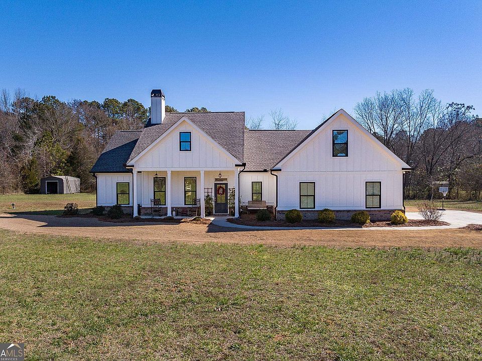 This beautiful modern farmhouse is tucked away on almost 2 private acres with a gated driveway, fenced yard and was built for a family member by one of Oconee County's most reputable builders, Greg Conley Construction. It is conveniently located in a rural setting close to both downtown Watkinsville and downtown Madison. The open concept plan features a kitchen with large center island, custom cabinets and tile backsplash and the dining area will easily accommodate a large farm table for holiday gatherings. The vaulted great room is open with fireplace, built in cabinets and windows that allow for lots of natural light. The split bedroom plan features 3 bedrooms and 2 and a half baths on the main level plus a finished bonus room with full bath upstairs that could easily function as a fourth bedroom or teen suite. The primary bedroom is on the main and has a large walk in closet and the primary bath has tile flooring and quartz counter tops. The large laundry room has a laundry sink and is equipped with shelves and hanging area. The oversized garage has a work area with work bench and there is also central vacuum system for the whole house. The rocking chair front porch and screened porch is a great place to relax and there is also a patio for grilling and outdoor fireplace in the back. The level lot is perfect for a garden and a water spigot is already in place and ready for spring planting. Don't miss this opportunity for this like new condition home built by one of the best! High speed fiber internet is available from Spectrum.