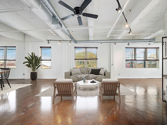 SOHO-style loft in the heart of Southtown with a private two-car garage, rooftop terrace, and expansive views of the Downtown San Antonio skyline. This open and spacious 3,030 SF condo offers three bedrooms/three bathrooms, unparalleled natural light streaming through the oversized windows, soaring ceilings, and fantastic wall space for art. The open-concept floor plan perfectly blends the living and lounge/office area with the kitchen and dining area, creating the perfect space for both intimate gatherings and large-scale entertainment. Included in one of the living areas is a large projector screen with built-in audio. The chef's kitchen, which includes a large pantry and storage space, features gorgeous cabinetry set against dark granite countertops and is appointed with a range of top-of-the-line appliances. With room for barstools, the large island is ideal for hosting casual meals or hors d'oeuvres. The adjacent dining area allows room for your more formal large gatherings. The private rooftop terrace offers stunning views of the Downtown San Antonio skyline, perfect for fireworks throughout the year. The South End Lofts offer all desired amenities, such as a spa-like pool with an outdoor grill, multiple fitness rooms, bicycle storage, and more. Enjoy living in Southtown with close proximity to San Antonio's finest restaurants, art galleries, museums, and the San Antonio River.