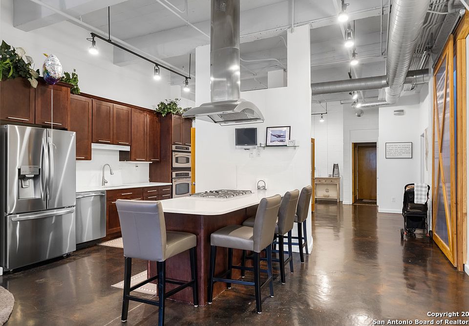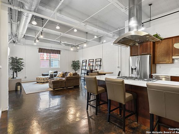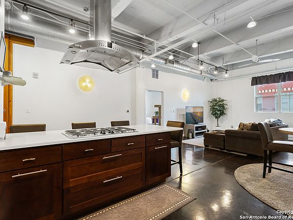 Experience modern city living in this stylish San Antonio condo perfectly situated near downtown with easy access to I-10, shopping, and dining. The open-concept layout offers a fresh and contemporary feel, featuring a sleek kitchen with stainless steel appliances, island seating, and an inlay gas cooktop ideal for both cooking and entertaining. The grand primary suite is a luxurious retreat with dual vanities, a deep spa-style soaking tub, a walk-in shower, and an expansive walk-in closet. An additional bedroom, dedicated office space, and a second full bathroom provide flexibility for guests or remote work. Enjoy rooftop access for stunning city views and unwind in the community's fantastic amenity center, complete with a pool, fitness area, and courtyard. Combining convenience, comfort, and sophistication, this condo captures the best of downtown San Antonio living. Parking is #6 & #23. 5 Ton HVAC unit replaced appox. 1 1/2 years ago.