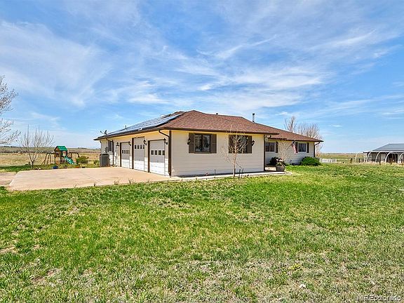 Rare opportunity to own a beautiful ranch with its own well on 5 acres within 35 miles of the I25 corridor. Close enough to amenities but far enough away from the hustle and bustle. 7 Garage spaces (yes SEVEN)- 3 attached & 4 detached garage spaces. The middle attached bay garage unit is taller than the rest. There is a good size dog run attached to the 4 car garage. This home has an energy efficient active solar panel design. A little money comes back from the utility company monthly. The vast underground, invisible electrical fence is installed & comes with 2 dog collars. Want fresh country eggs? The chicken coop stays. You'll hear the neighing of the neighbor's horses. Other farm animals are permitted, too. Enjoy the mature apple trees, fresh food and flower garden. New double pane vinyl windows (2018) with transferrable lifetime warranty, to include natural disasters. There are 2 great sized food pantries. Covered back patio to enjoy the gorgeous sunset views of the mountains- all the way down to the Spanish Peaks. Take advantage of the 2 flex spaces or home offices on the main level. Cozy up with the wood burning stove in this open floor plan. Fast internet speed available. Fresh new interior and exterior paint. Basement finish was started but can be changed so you can make it your own. Amazing partial off-grid living with modern comforts in this delightful setting. Solar panels are transferrable when buyer takes over the loan at $150 per month. Other options available.