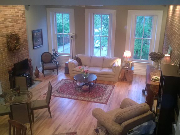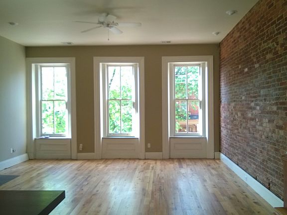 Beautiful, spacious historic apartment - a completely renovated 2000 sf, 2 bedrooms. 2 bathrooms and a studio/3rd bedroom. Living room - kitchen - has ten foot ceilings, expansive exposed brick walls, open floor plan with a large island, hardwood floors, abundant natural light - a wonderful entertaining space. Kitchen has a dishwasher, disposal, upgraded appliances, icemaker and upgraded cabinets. Large Master Suite - bedroom 16’ x 17’ with vaulted ceilings, window seat dormer, built-in shelving, double closets with storage. Master bath 11’x11’ with French doors and large walk-in shower. 2nd living area/studio/3rd BR 11’x25’ with 5' dormer window seat, walk in closet and storage room; 2nd Bedroom 13’x14’ with large bay windows, brick fireplace and pocket door to adjoining bath. Full size front load washer and dryer in unit, and a storage room. Walking distance to Allegheny General, the North Shore, T-station, Heinz Field, PNC Park, restaurants, casino, riverfront trail. Free T to downtown to connect to Oakland and universities. Easy access to major highways to ease commute in all directions. Walk or bike the trail to downtown or the Strip. On quiet street in Manchester, one of the Northside's historic districts, along with the Mexican War Streets and Allegheny West. Fully insulated, high efficiency furnace, AC and water heater. Programmable thermostat and security system. Garage option rental available. Non smoking. Available June 1st.