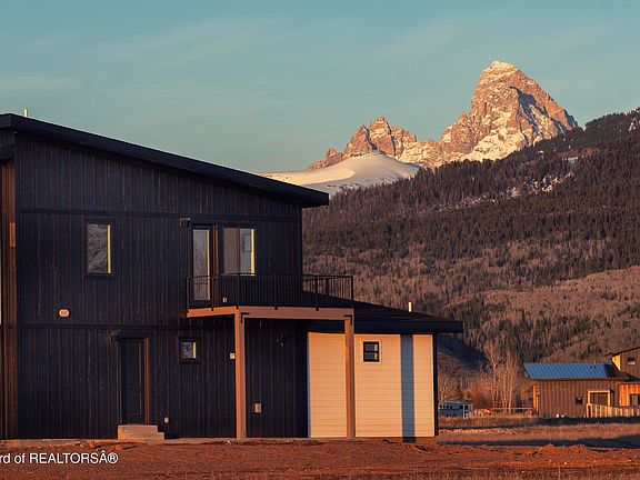 Conveniently located near Driggs on the ''fast track'' to Grand Targhee, this contemporary home sits in the valley's famed view corridor. Low-maintenance siding and stone set the tone for stylish, easy living. Enjoy the East-facing patio with fireplace—perfect for shaded Summer days or cool evenings. Inside, a formal entry leads to a chef's kitchen with LG Studio appliances, inset cabinetry, 2 dishwashers, gas range with griddle, and granite sink. The vaulted living room features a stone fireplace. The main-floor suite offers patio access, a spa-like bath with wet room, soaker tub, walk-in shower, and through access to the laundry with double hookups. A powder room completes the main level. Upstairs, a bonus room over the garage boasts a private entry, while 2 bedrooms share a large bath.