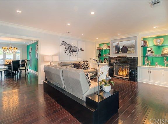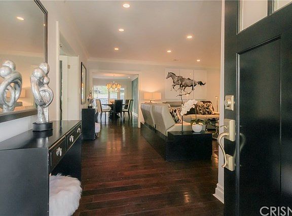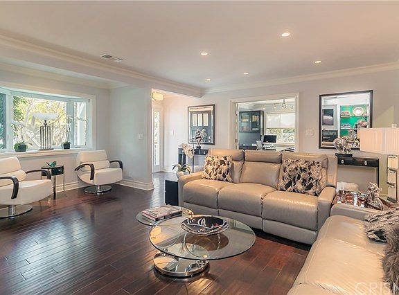 Designer's own exceptional home combining the original character and style of the past paired with the modern upgrades of today. Nestled in the Sherman Oaks foothills and positioned on a slight knoll, this two bedroom+den home will appeal to your fussiest buyers. Exceptional quality is presented throughout.A formal entry leads to the living room with bay window, recessed lighting, crown mouldings/ baseboards, manufactured wood floors, and marble faced fireplace, plus built-in cabinetry. Adjacent den is a great workspace /recreational room which continues the aesthetics of the living room elements. A cooks kitchen with stainlesss dishwasher, oven and micro, beveled marble counters, lattice marble back splash, kitchen island with 5 burner stove and breakfast bar. Ample dining area space with custom mural has french doors which lead to the tranquil back yard. Exceptional privacy abounds and includes a built-in fountain, large patio area and elevated mediation grassy area perfect for entertaining. Sumptuous master suite includes a walk-in closet, built in cabinetry, french doors to the backyard, and en suite master bath with duel sinks and vanity, soaking tub, marble tiled shower, and marble surfaces. The second bedroom offers a large closet and tranquil back yard views. Other amenities include two car garage with direct home access, copper plumbing, tankless water heater, central ac/heat, alarm system, newer windows. Located in Dixie Canyon/Milliken district. Show cold!