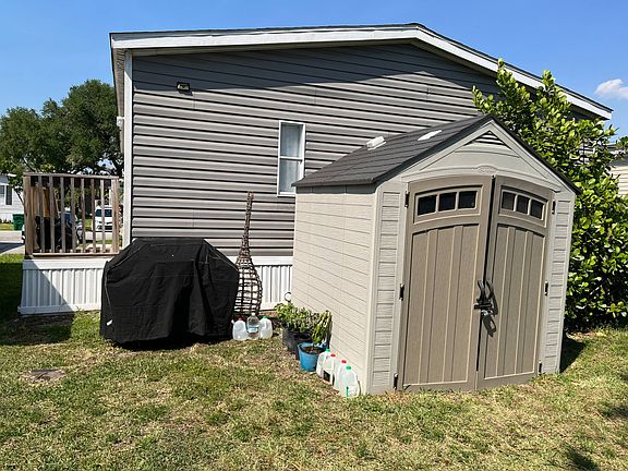 Español abajo ... OWNERSHIP OF LAND IS NOT INCLUDED IN PRICE. "Campion", given its name due to the peaceful surroundings, is a 2019 impeccable manufactured home located in Sunshine Village, an all ages community in the exclusive City of Davie. This captivating home is surrounded by beautiful pine trees, a generous backyard and groomed landscaping with a "no place like home" feeling. It's ample driveway allows for parking for up to (4) vehicles. Its outside shed provides additional storage space for your entertaining needs. Inside, you are welcomed by natural lighting and an attractive modern open and split floor plan. Throughout the home, you can appreciate the water and scratch resistant flooring making this an invaluable convenience and easy maintenance living. Entertaining and being connected has never been so easy with the open kitchen that oversees the living room area. Enjoy the attractiveness and convenience of the kitchen countertops and abundance of cabinets. Off to the side of the kitchen, there is an additional panty area with a washer and dryer that can be accessed from the master bathroom, but that's not all; this room also leads to the exterior patio for convenient BBQ and outdoor entertaining. The master bedroom is generous in space allowing for a king size bed, dresser and dual night stands and his and her closets! The master bath is spacious and connects to a washer and dryer area leading to the exterior patio. The Campion offers additional privacy with t's split floor plan and non adjacent bedrooms separated by the guest bathroom. This home is attractive, gerous in space, offers privacy and plenty of happy memories to come! Español---- The Campion es una impecable casa prefabricada de 2019 ubicada en Sunshine Village, una comunidad para todas las edades en la exclusiva ciudad de Davie. Esta casa cautivadora está rodeada de hermosos pinos, un generoso patio trasero y un paisaje cuidado con un sentimiento de "no hay lugar como el hogar". Su amplia entrada permite el estacionamiento de hasta 4 vehÃculos. Su cobertizo exterior proporciona espacio de almacenamiento adicional para sus necesidades de entretenimiento. En el interior, te recibe la iluminación natural y un atractivo y moderno plano de planta abierto y dividido. En toda la casa, se pueden apreciar los pisos resistentes al agua y a los rasguños, lo que hace que sea una comodidad invaluable y una vida de fácil mantenimiento. Entretener y estar conectado nunca ha sido tan fácil con la cocina abierta que supervisa el área de la sala de estar. Disfrute del atractivo y la comodidad de las encimeras de la cocina y la abundancia de gabinetes. A un lado de la cocina, hay un área de ropa interior adicional con una lavadora y una secadora a las que se puede acceder desde el baño principal, pero eso no es todo; esta sala también conduce al patio exterior para disfrutar de barbacoas y entretenimiento al aire libre. El dormitorio principal es generoso en espacio, lo que permite una cama tamaño king, una cómoda y mesitas de noche dobles y armarios para él y para ella. El baño principal es espacioso y se conecta a un área de lavadora y secadora que conduce al patio exterior. The Campion ofrece privacidad adicional con un plano de planta dividido y habitaciones no adyacentes separadas por el baño de visitas. ¡Esta casa es atractiva, espaciosa, ofrece privacidad y muchos recuerdos felices por venir!