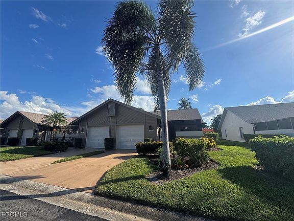 Cross Creek Golf & Country Club Villas are one of the best communities in Fort Myers!  Great location and close to everything! This Villa has a beautiful view of the lake with the golf course on the other side of the lake to preserve privacy with a peaceful and serene view.  The rear lanai on the water side has sliding glass in addition to the screen enclosure and an HVAC vent for comfortable enjoyment all year long.  The front screened lanai is enclosed with a privacy wall and is surrounded by colorful landscaping.  You'll love the cathedral ceilings in the main living areas and primary bedroom to enjoy the end unit location which delivers lots of natural light from the Florida Sunshine in every room.  The roof, exterior painting and front screened lanai were replaced over the past 18 months.  The hot water heater was replaced in 2022 and a completely new HVAC, including ductwork was installed in 2023.  The inside has been freshly painted with coastal colors to enable easy decorating.  The villa has low maintenance, wood plank laminate vinyl throughout adding to the coastal decor. You will enjoy amenities like the a community pool and sauna within a very short walk from your front lanai, clubhouse with restaurant and golf with reciprocal privileges at other local courses.