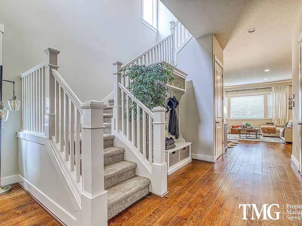 Upstairs, you'll find all four bedrooms, including a spacious primary suite with vaulted ceilings, his and hers closets, and an oversized bathroom featuring a large soaking tub and walk-in shower. The upper level also includes a full hallway bathroom with double sinks, a laundry room with a washer and dryer included, and a small loft/flex space. This home combines thoughtful design with access to top-tier community amenities- don't miss your chance to make it yours!
