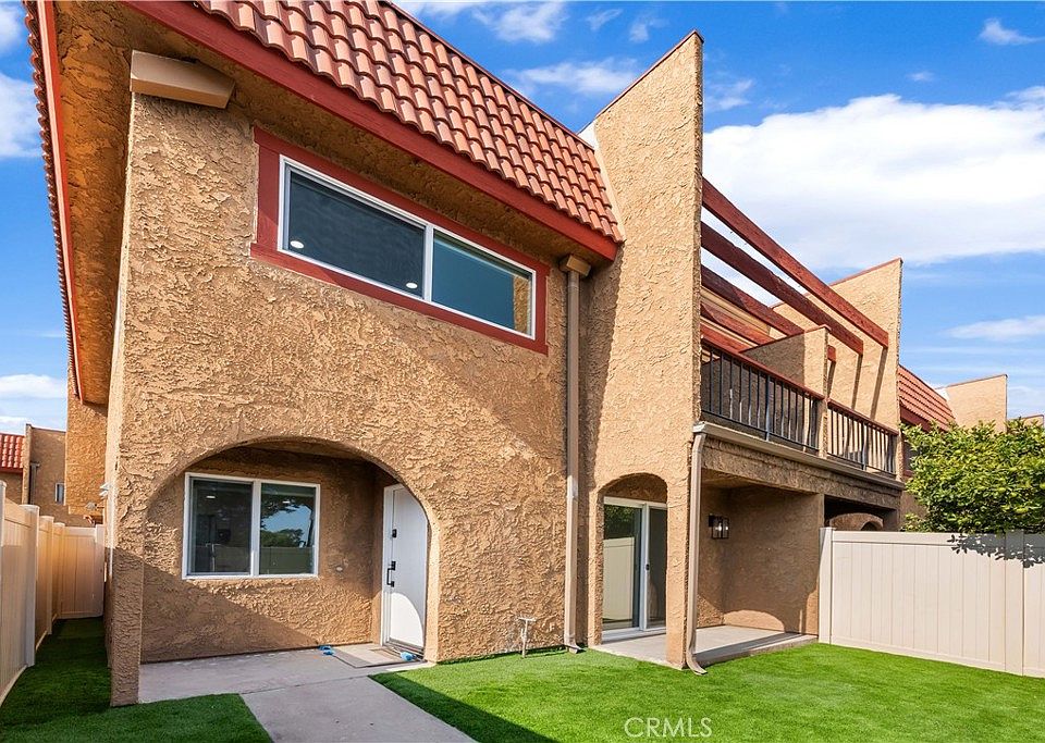 Bright, fully renovated end-unit townhome with a private yard, balcony, and 2-car garage. This 3-bed, 2.5-bath layout features an open main level with wide-plank flooring, recessed lighting, and a modern tiled fireplace. The new kitchen showcases white shaker cabinetry, quartz-style counters, subway backsplash, open wood shelving, matte-black fixtures, and a stainless appliance suite. Sliders open to a fully fenced turf yard for easy indoor/outdoor living. Upstairs are three generous bedrooms; the expansive primary offers wall-to-wall closets and a private balcony. All baths are new with coordinating vanities, quartz tops, matte-black hardware, and marble-look tub/shower tile. End-unit positioning adds extra light and privacy. Convenient location close to everyday shopping and dining with quick freeway access—minutes to Disneyland, Angel Stadium, parks, and area beaches.