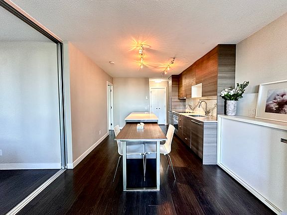 2 bedrooms + den / 2 bathrooms, located on the 15th floor, comes partially furnished with a queen-sized murphy bed (that folds up to be a sofa), a built-in single daybed and a built-in dining table that can accommodate up to 8 people. Appliances (fridge, dishwasher, oven, microwave, washer, dryer) are all provided. Comes with 1 parking spot. Building amenities include a gym, rooftop park, resident lounge, board room and a guest suite. Located in Surrey Central, it's only a few minutes away by foot to Skytrain, shopping centre, Walmart, restaurants, library, SFU and City Hall. Use of Premises: The premises shall be used solely as a private residence by the Tenant(s) and their immediate family. No commercial activity is permitted without the Landlord's prior written consent. Maintenance and Repairs: Tenant shall keep the premises clean and in good condition, promptly reporting any needed repairs to the Landlord. Tenant shall be responsible for damages caused by negligence or misuse. Utilities: Tenant shall be responsible for payment of [list utilities], while Landlord shall provide [list utilities included]. Alterations: Tenant shall not make any alterations, improvements, or additions to the premises without prior written consent from the Landlord. Subletting and Assignment: Tenant shall not assign this lease or sublet any part of the premises without prior written consent of the Landlord. Entry by Landlord: Landlord may enter the premises with reasonable notice (typically 24 hours) for inspections, repairs, or to show the unit to prospective tenants/buyers. Default: Failure to pay rent or comply with any term of this lease constitutes default. Landlord may terminate the tenancy in accordance with applicable laws. Utilities: The Tenant shall be responsible for arranging and paying for all internet and electricity (Hydro) services to the premises. Cleaning Fee: Upon termination of this lease, the Tenant shall pay a one-time cleaning fee of $200 to cover standard move-out cleaning expenses. Smoking Policy: Smoking of any kind, including tobacco, cannabis, or vaping, is strictly prohibited within the premises, including balconies, patios, and any other areas under Tenant's control. Pets: The Tenant is permitted to keep up to two (2) domestic cats in the premises. The Tenant shall be responsible for any damages or additional cleaning required due to the presence of pets. Pet Deposit / Fee: Any damage caused by pets will be deducted from the security deposit. If it exceeds the security deposit amount, additional cost will be based on the repair required. Noise and Nuisance: The Tenant shall not cause or permit loud noise or disturbances that may interfere with the quiet enjoyment of neighboring residents. Cleaning / Condition of Premises: Tenant agrees to return the premises in clean and good condition, subject to normal wear and tear. Any additional cleaning required beyond the paid cleaning fee may be deducted from the security deposit. Violation of Smoking Policy: Any breach of the smoking policy may result in additional cleaning fees, deodorizing charges, or termination of tenancy. Move-In / Move-Out Fee: The Tenant shall be responsible for paying any move-in and/or move-out fees charged by the Strata Corporation or Building Management. The Tenant must arrange booking of the elevator (if required) in advance and comply with all strata rules and procedures related to moving.
