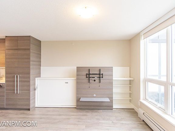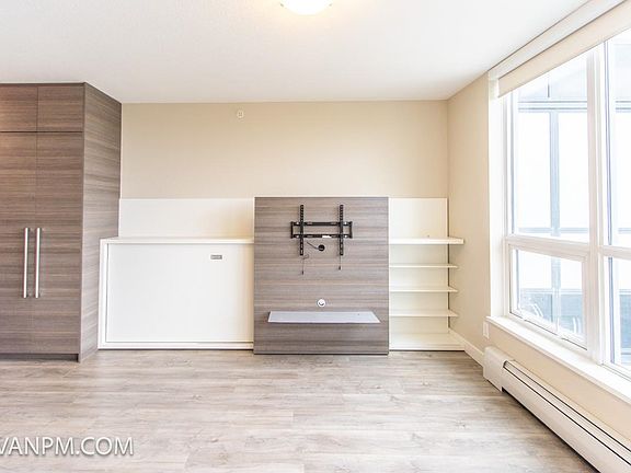 1 Bedroom with Built-in Cabinet/Closet and Built-in Murphy Queen Size Bed with Sofa. Convertable Living Space with Sliding Divider. Livingroom. 1 Bathroom with Tub. 1 Kitchen (Dishwasher, Microwave, Rangehood, Electric Stove, Fridge). BosaSPACE responsive floorplans respond to the rhythms of your life, with ExtenTABLE transforming your kitchen island into a long table that comfortably seats 8 for dinner, and a SleepTHEATRE that conceals a daybed-sofa/guest bed behind your TV. In-Suite Laundry Front loading washer/dryer. Laminate Flooring in the living room, Carpet in the Bedrooms. WEST exposure. 525sqft + Balcony. 1 Storage Locker. Baseboard, Hot Water Heating. 1 Parking. Built in 2016. UTILITIES NOT INCLUDED.