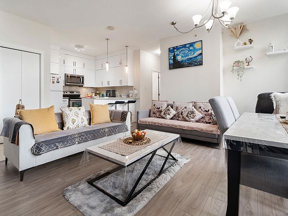 Corner condoOpen and airy layoutSpacious bedroomsStylish finishesNew accent wallUpgraded fridge and dishwasherFull kitchen