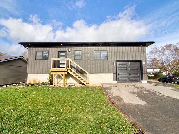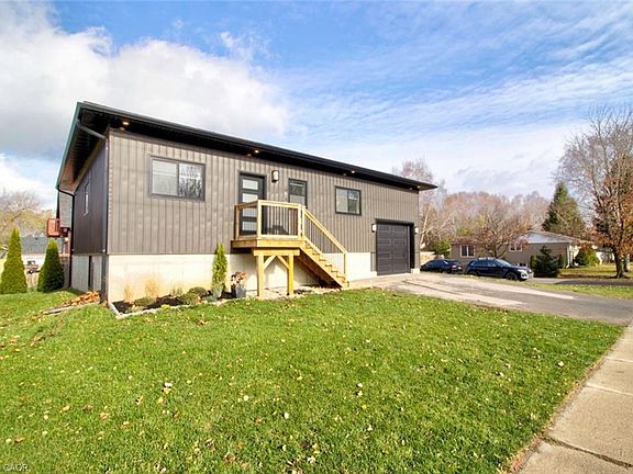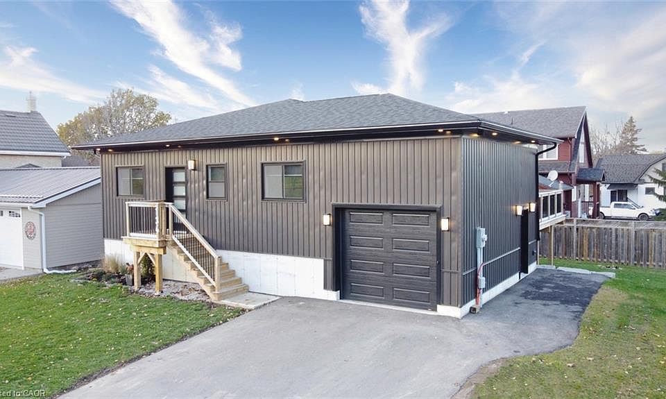 Welcome to 134 Aiken Street in Meaford, a stunning newly built 3 bedroom, 1 bathroom detached raised bungalow boasting 1,054 square feet of meticulously designed living space on the main level, set on a desirable corner lot. Step inside to an open-concept kitchen featuring sleek black stainless-steel appliances, gleaming quartz countertops, a dramatic waterfall island, custom cabinetry and a matching quartz backsplash. Enjoy soaring 9-foot ceilings on both the main level and basement, smooth finishes throughout, elegant hardwood floors, a cozy natural gas fireplace, front-load Electrolux washer and dryer, recessed lighting in the main living areas and soffit pot lights for added ambiance. Step out to the expansive elevated deck, ideal for entertaining. Superior construction includes Rockwool insulation in all exterior walls and the garage, a robust 200-amp electrical service and a 30-amp exterior plug ideal for trailers, RVs or EVs. The attached garage offers practical interior access with an automatic garage door opener for added convenience. With plumbing rough-in for a second bathroom and electrical roughed-in in the basement, it's ready for your personal finishing touches. Just steps from the Georgian Bay waterfront, near excellent schools and minutes from downtown Meaford, this home spares no expense with premium craftsmanship and features, making it an exceptional opportunity for modern living. Discover your dream home, move in and start living the lifestyle you deserve!