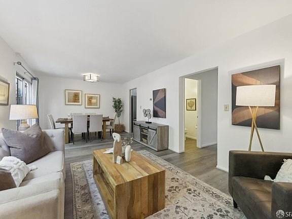 Welcome home! Hunter's Point is one of the most exciting, beautiful and growing neighborhoods in San Francisco. This large townhouse checks all the boxes for a starter home or investment opportunity. The home has two levels of sun illuminated living space and a large eat in kitchen. The living dining room combination is open and accessible to the backyard through a sliding door. The backyard is private perfect to host or simply relax, as it has a high wooden fence, surrounded by lush trees and a storage room. The primary bedroom is an ensuite with a walk in shower. The in unit laundry room is large and is equipped with a washer, dryer, and additional storage. Finally, the townhome features a new roof, a parking space, and low HOA dues. New interior paint, appliances and flooring make this home an attractive investment. Finally, the home is nearby waterfront parks, artists studios, and connected via Muni. This starter home is ready for it's next owner.