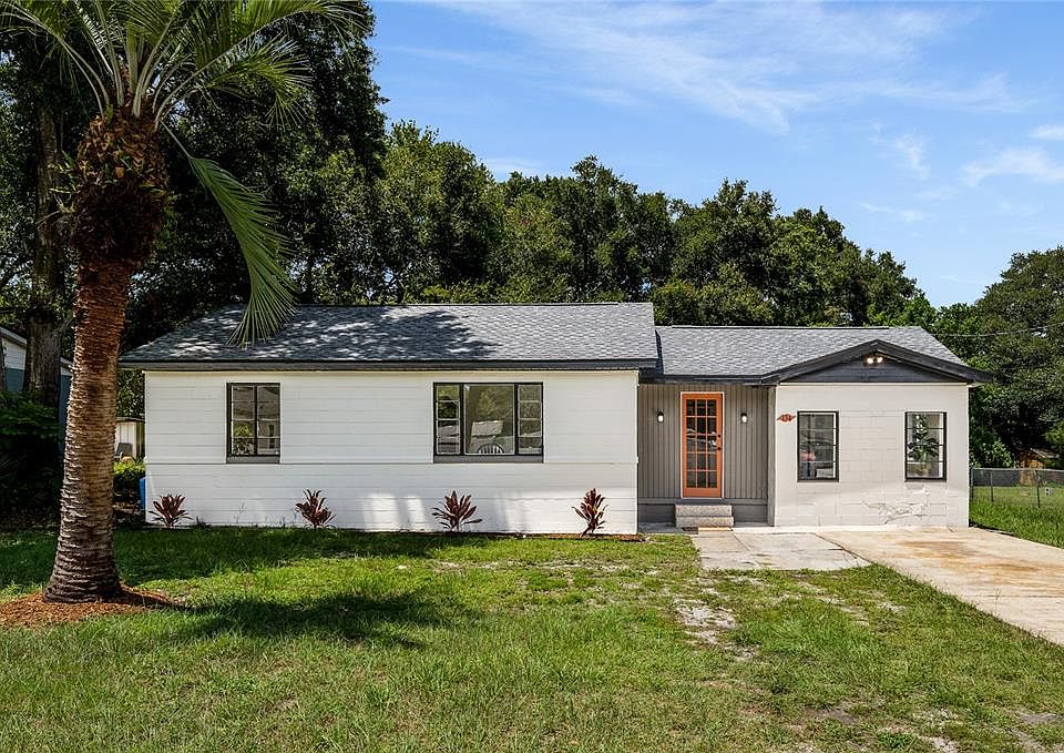 NEW ROOF! Beautifully updated concrete block home on a large lot (.27 acres) in the PLANTATION ESTATES neighborhood. Nestled near the shores (PUBLIC ACCESS) of Lake Monroe, this 2-bedroom, 2-bath home exudes style and charm. FULLY REMODELED and MOVE-IN READY, the home’s kitchen is complete with TWO-TONE cabinetry capped with CROWN MOLDING, and topped with BUTCHER BLOCK countertops. NEW Sink, Faucet, and Garbage Disposal plus NEW STAINLESS STEEL APPLIANCE PACKAGE to delight the family gourmet. <br><br> BOTH BATHROOMS -- COMPLETELY RENOVATED! Everything new including: WALK-IN SHOWER, TILE, VANITIES, FAUCETS, TOILETS, LIGHTING & MORE. FRESH, NEW PAINT ON BOTH THE INTERIOR & EXTERIOR of the home. Gorgeous LUXURY VINYL PLANK FLOORING throughout the entire home. NEW & MODERN BASEBOARD & TRIM. Stylish upgrades include black hardware on all doors, a pair of glass insert barn doors in the living room and floating wood shelves. <br><br> BONUS ROOM (not included in the square footage) adds an additional 200 square feet of living space at the rear of the home! Interior laundry room with Washer/Dryer Hook Ups brings the total square footage to almost 1,400sf. Double Gates leading to the LARGE backyard is entirely fenced and a metal storage shed awaits your toys and tools. <br><br> Close to the downtown area’s charm, Community Splash Park and Power Park Play ground, tranquil Gemini Springs and Lake Monroe boat ramp. Commuting will be a breeze! SunRail Station is right around the corner plus quick and easy access to I-4 and the newly constructed 417/429 Beltway. NO HOA FEES in Plantation Estates. COME AND FALL IN LOVE with the DeBary lifestyle.