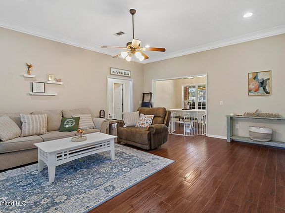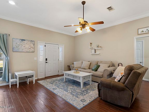 Affordable, adorable, and 100% USDA financing available (no down payment needed)! Well-maintained 3BR/2BA home on a large corner lot with side-entry garage. Spacious split plan with oversized living room featuring crown molding, gas fireplace, and built-ins. Primary suite has vaulted ceiling, walk-in closet, jetted tub, walk-in shower, and vanity area. Kitchen offers ample cabinets, two pantries, and a custom built-in office. Bright dining area opens to kitchen and living room. Large fenced yard with covered porch and 20x20 workshop with electricity and perfect for hobbies or storage. Double gate and permitted drive allow space for boat or jet ski. Move-in ready and full of value!