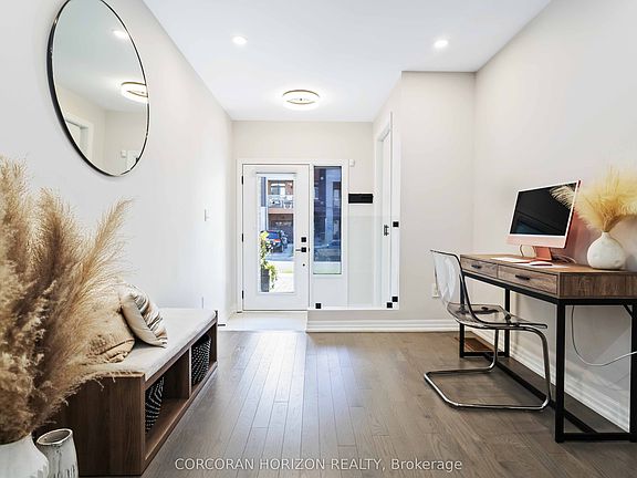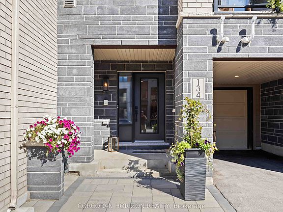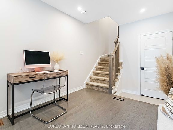 Modern Luxury in Woodland Hill-- Welcome to 134 Bravo Lane. This fully renovated 3-bedroom townhome blends style, comfort, and convenience with luxury finishes throughout. Enjoy bright open living with smooth ceilings, pot lights, hardwood floors, upgraded countertops, vanities, and tiles. The primary bedroom is a retreat with a custom walk-in closet, built-in night stand lighting, and a spa-like ensuite bathroom with heated floors. The versatile 3rd bedroom includes a custom Murphy bed with built-in storage -- ideal as a guest room, office, or playroom. A main floor office offers privacy for those who work from home. Custom closets, a sleek glass-railed entryway, and a smart laundry nook add function and style. Outside, interlocking adds curb appeal and side-by-side parking. **Did we mention location!? Steps to top schools, parks, trails, shopping, and the GO Station. Minutes to both HWYs 400 and 404**
