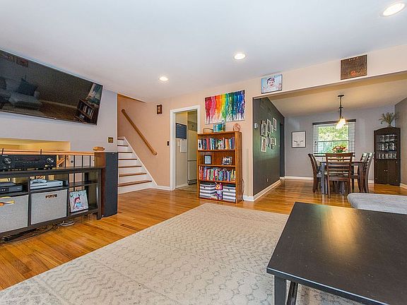 Step into the welcoming foyer & go up to a spacious living room w/ picture window, dining room, & eat-in kitchen w/ door leading to the backyard. Upper level offers 3 bedrooms & 2 full updated baths. (Main bath, & Master bath w/ walk-in shower stall). Ground floor has a family room, half bath, large office (currently being used as a 4th bedroom) & door leading to the backyard. Perfect for in-law suite. Basement is finished w/ separate laundry rm. Spacious yard is fully fenced w/ largepatio. Perfect for summer entertaining! Central AC & attached garage completes the package! Near shopping, schools, transit, & parks