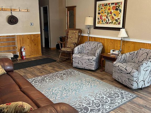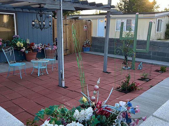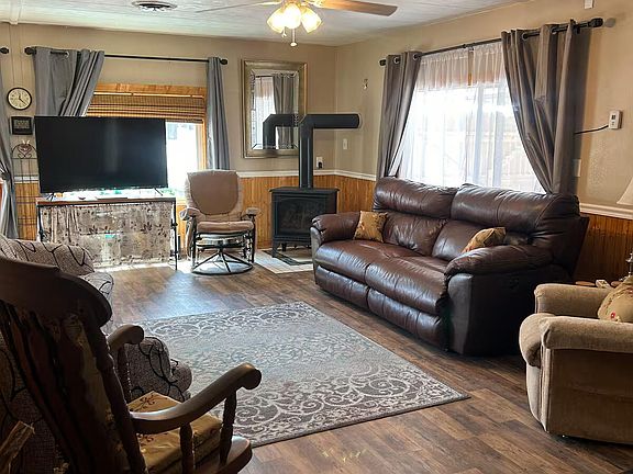 This updated and fully furnished short-term rental blends comfort and convenience. The cozy living room features a gas fireplace, electric reclining couch, and lift chair. The dining area seats six and includes a collapsible buffet table with four chairs. Climate control options include a swamp cooler, ceiling fans, and two portable A/C units. The kitchen is fully equipped with a gas stove/oven, microwave with air fryer function, and ample storage. Outdoors, enjoy three large fenced patios with dusk lighting, a new BBQ grill, gas firepit, games, and generous seating. Secure off-street parking accommodates one boat, one RV, and two vehicles. Two sheds offer extra storage. Walk to town and Lake Powell with ease.