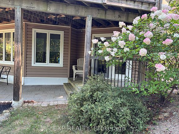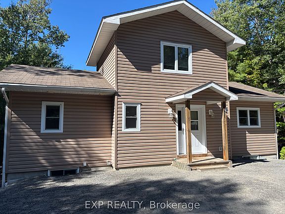 Quiet quality and thoughtful design define this 4-season, 4-bedroom home or cottage on the sought-after shores of spring-fed Carson Lake. Set on a beautifully landscaped lot, a gently sloped and terraced path leads you to a sandy beachfront complete with a dock, seating area, and convenient storage ideal for long summer days by the water. The lake itself sparkles with natural beauty and charm, offering excellent swimming, fishing, and boating. With culvert and portage access to three additional lakes, there's always a new shoreline to explore. Step inside to find a bright and welcoming main floor, where a cathedral ceiling soars above the family room. The open-concept kitchen and dining area flow seamlessly together, all framed by a wall of windows that capture stunning lakefront views. The kitchen includes a walk-in pantry with a dedicated freezer to maximize efficiency for entertaining.The main floor also features a powder room and a spacious primary bedroom suite, complete with a walk-in closet and 4-piece ensuite. Both the primary bedroom and the main living areas offer direct access to a wraparound lakeside deck, amazing for dining, lounging, or simply soaking in the peaceful views. Downstairs, the walkout lower level offers three additional bedrooms and a relaxed living space with a built-in bar, all opening onto a lakeside patio and into the beautifully maintained backyard. From here, you're just steps from enjoying calm, western-facing shoreline, magnificent sunsets and quiet evenings by the water.