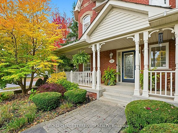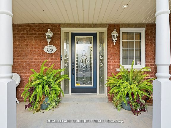 Welcome to 134 Cassels Rd E, where timeless design meets small town charm in the heart of Brooklin, one of Durham Region's most sought after family communities. This beautiful corner lot home captures the essence of comfortable modern living, perfectly positioned backing onto a park and just steps from top rated schools, the public library, and Brooklin's vibrant downtown core. From the moment you arrive, the manicured lawn, inviting front porch, and impeccable curb appeal set the tone for pride of ownership. Inside, the main floor impresses with 9 ft ceilings, large newer windows, and a skylight that fill the home with natural light, highlighting warm tones and thoughtful upgrades throughout. R60 insulation added during window replacement. The main floor offers distinct yet connected living and dining spaces that flow into a functional kitchen with generous counter space, perfect for family meals and gatherings. A cozy family room provides a quiet retreat for movie nights or relaxed evenings by the fireplace. Upstairs, discover four spacious bedrooms, including a stunning primary suite featuring its own balcony, fireplace, and a luxurious 5-piece ensuite, your private sanctuary after a long day. Each additional bedroom is bright and inviting, giving every family member their own comfortable space. With four bathrooms in total, convenience is built right in. Step outside to your fully fenced backyard, ideal for summer barbecues, evenings by the fire, or simply letting the kids and pets play safely. This outdoor space is private, peaceful, and ready for your memories to be made. Just a short walk to schools, coffee shops, and parks, and minutes to Highways 407 and 412, this location offers the perfect blend of accessibility and small town tranquility. It is more than a home, it's an opportunity to live in a connected, thriving community where families grow, neighbours know your name, and every day feels a little more like home.