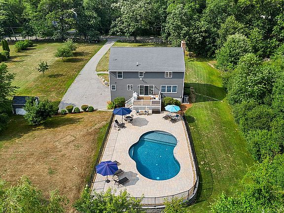 A stunning find on 1+ acre of tranquil private land! NEW state of the art IN-GROUND POOL with a fantastic outdoor entertaining area just in time for the HOT summer days! Beautiful unique colonial offers a peaceful lifestyle with all the modern amenities! So many UPDATES in the last 2 yrs NEW: CENTRAL AC, GARAGE DRS, PAINT, FLOORING, SHELVING, energy efficient LIGHT FIXTURES, BATHROOM FIXTURES, DECK, APPLIANCES, RECESSED LIGHTING, STONE FIREPLACE & FRONT PORCH. Lower level has a bonus room currently being used as an office/work out room. Location is central to: Andover Country Club, driving range, downtown & major highways, especially 93! California closets in every bdrm & custom shelving in the living room. Spacious foyer w/wainscoting & chair rails, eat-in kitchen with hardwood floors. Open concept living room & dining room PERFECT for entertaining! Master suite is equipped w/fireplace & SIZABLE walk in closet! BRAND new 3K pool cover w/20 yrs warranty left as a gift for lucky buyer!