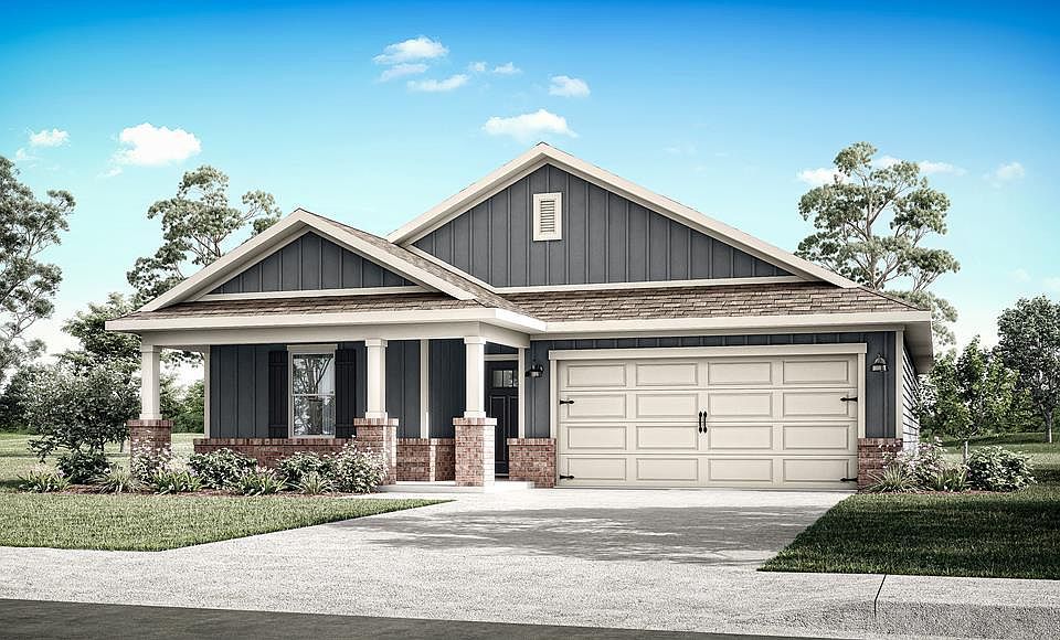 Welcome to 134 Chipola Circle, the Kelly floor plan at our Whispering Creek community in Dothan Alabama. Choose from two stunning modern exteriors that are sure to impress. This thoughtfully designed one-story home features a seamless layout, with two bedrooms situated at the front and a private owner's suite tucked away in the back corner for added tranquility. The Kelly features a welcoming front porch adjacent to the front-entry, 2-car garage. Inside this 3-bedroom, 2-bathroom home, you'll enjoy 1,486 square feet of comfortable living space with 8-foot ceilings. The foyer guides you past two bedrooms and secondary full bathroom. Moving further, you'll enter the open-concept area, with a spacious dining area on one side and a kitchen on the other, situated behind the second bedroom. This space seamlessly connects to the living room, which leads to the private Owner's Suite. The primary bedroom boasts an attached bathroom with a walk-in closet, providing ample space for your morning routine. The double vanity ensures you won't have to share a sink, and a separate door for the toilet adds extra privacy. The laundry room is conveniently located just past the foyer, before the dining area, and next to a linen closet. Additionally, a coat closet is situated across the foyer, where the bedrooms end. Don't wait! Schedule your tour today! Pictures may be of similar home and not necessarily subject property. *HOA dues TBD*