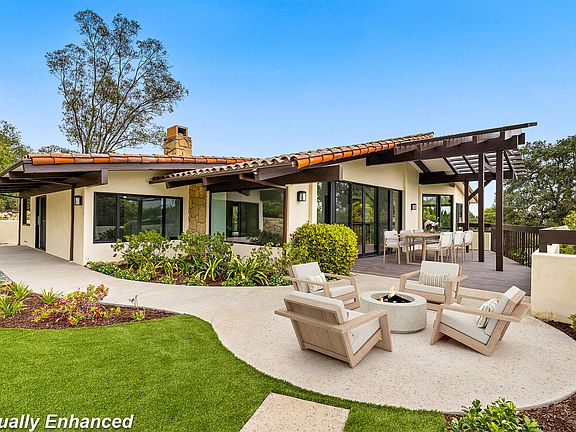 Available now, unfurnished, long-term. Tucked in the serene and sought-after Eucalyptus Hill community, this beautifully remodeled single-level home offers the perfect blend of modern luxury and tranquil Santa Barbara living. With 3 spacious bedrooms, 3 full baths, and 2,853 sq ft of refined interiors, the home is designed for both comfortable everyday living and effortless entertaining. Expansive windows throughout flood the home with natural light and frame peaceful views of lush landscaping and surrounding hillsides. The spacious living room features soaring cathedral ceilings, a striking stone fireplace, and seamless flow into the formal dining area, cozy den, and the heart of the home- the gourmet kitchen. This culinary haven is equipped with wood-beamed ceilings, brand new cabinetry, stone countertops, a large eat-in island, wine fridge, and state-of-the-art appliances. The primary suite offers a luxurious escape, complete with a newly remodeled spa-like bathroom, oversized walk-in closet, and private deck. Additional highlights include new flooring throughout, a robust A/C system, remote-controlled blinds, bonus office/den perfect for work or leisure, new security alarm system, and a 2-car garage with ample storage. Outside, the expansive and private backyard features custom landscaping, updated irrigation, and breathtaking mountain views, perfect for hosting gatherings or enjoying quiet evenings under the stars. Thoughtfully updated throughout with no expense spared ensuring every detail reflects quality and modern elegance, this secluded sanctuary is move-in ready and truly one of Santa Barbara's hidden gems.