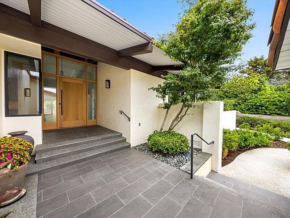 Striking stone fireplaceBeautifully remodeled single-level homeGourmet kitchenLarge eat-in islandWine fridgeExpansive windowsNewly remodeled spa-like bathroom