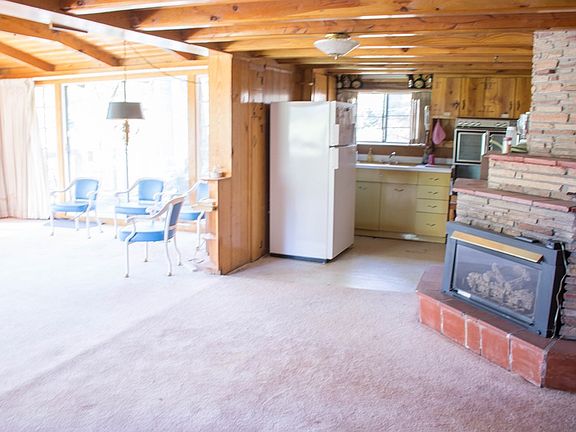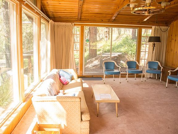 Can you see it...the potential in this fabulous restoration project? Walls of picture windows, gleaming, highly-varnished knotty pine ceilings, fireplace, outdoor kitchen...it all calls to be lovingly restored. On an over-sized lot there's plenty of room for expansion, ample parking and, unlike most of the homes in this little neighborhood, this one is on city sewer. Perfectly secluded, right in the heart of Ruidoso, with the sound of the Rio Ruidoso tumbling over rocks, and deer, elk, turkeys wandering past the living room windows, so close you could almost touch them.