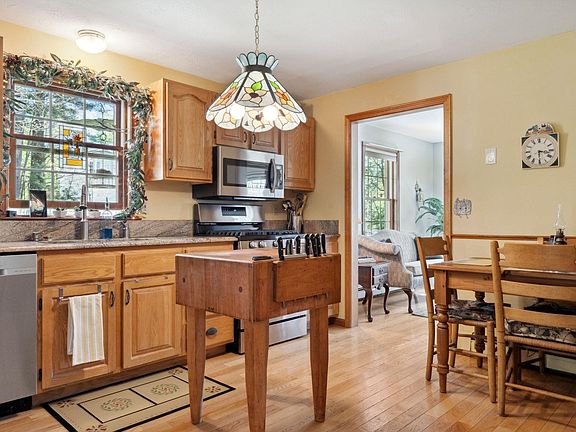 Welcome to your dream retreat in Derry, NH! Nestled on a sprawling 1.25-acre wooded lot, this 3 bed, 1.5 bath Gambrel exudes rustic charm and modern elegance. Inside, you'll find 1,567 sq ft of meticulously maintained living space, boasting hardwood floors on the first floor, plush carpet on the second, and sleek tile in the bathrooms. The heart of the home is the stunning kitchen, complete with granite countertops and stainless steel appliances, perfect for whipping up gourmet meals while enjoying views of the lush greenery outside. Entertain in style or unwind in solitude on the expansive screened-in porch, where the tranquil sounds of nature serenade you. Picture-perfect garden space and a cozy fire pit beckon you to enjoy the great outdoors year-round. Indulge in worry-free living with a convenient 2-car drive-under garage, updated Andersen windows, cedar siding, and a freshly redone driveway. Plus, enjoy peace of mind with the updated roof and heating system, adding both style and security to your home. Built in 1990 and lovingly maintained throughout the years, this Gambrel is the epitome of New England charm and sophistication. Nestled in a picturesque country setting, Derry offers an idyllic lifestyle with easy access to major highways and public transportation options, making commuting a breeze. Explore scenic trails at Alexander-Carr Park or enjoy leisurely strolls along the shores of Beaver Lake, surrounded by lush greenery and serene landscapes.