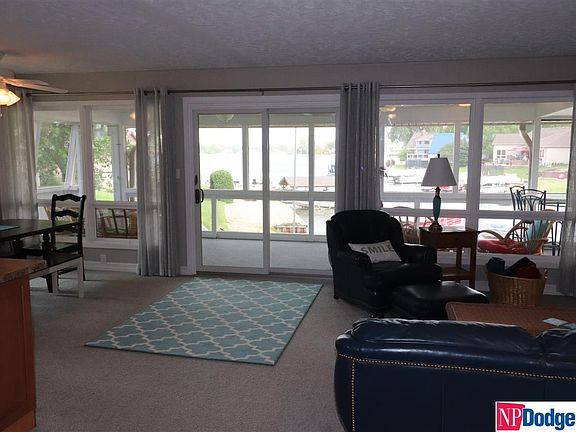 Your opportunity has arrived to live the Lake Lifestyle only 20 minutes from Omaha, amazing views from this dream home, located in a great cove just off the main lake. A Sandy beach, great dock for swimming, fishing, relaxing and entertaining. Brand new baths, and a completely remodeled lower level with LVP flooring throughout. Fresh and new inside and out... new paint, light fixtures, trim, doors, carpet, electrical, appliances, the list goes on and on... Open floor plan with non-conforming 3rd bedroom in LL. Lots of space to entertain and you have a dream 3 car garage for all your lake toys. Just in time for summer fun! Ginger Cove is a premier lakefront development with a private boat ramp, and active HOA. Enjoy a lake home with a walk-out basement, and no flood insurance required.
