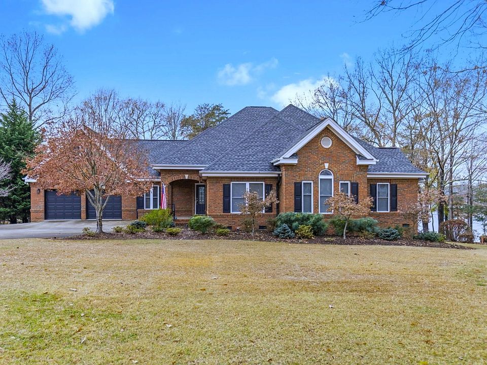 The best of lakefront living at Lake Blalock! Custom built in 2001, this distinctive waterfront home is located in highly sought after North Harbour and offers stunning views of Lake Blalock. Home sits at the end of a cul-de-sac on a large lot with panoramic views of the lake and contains over 150 feet of lake frontage with a dock in place. Home features open floorplan with hardwood floors, beautiful moldings throughout, living room with high trey ceilings, built-in cabinets, & gas logs fireplace, separate dining room, gourmet kitchen with custom cabinetry, Wolf gas cooktop, Sub Zero frig, island, granite countertops, pantry, barstool seating, & breakfast room. One of the best rooms in the house is the 28 ft long sunroom with incredible views of the lake! The sunroom is heated/cooled, has window shades, and can be enjoyed year-round. The spacious owners suite is located on the main floor and offers sitting room, fireplace, walk-in closet, and spa-like bathroom with double vanity, walk-in shower, & jetted tub. Also on main floor are two bedrooms sharing a hall bathroom. Second floor features large 23 ft X 13 ft room with private bathroom & large closet, which is the 4th bedroom or could be ideal space for kids recreation room, home office, etc. Separate laundry room with utility sink, additional refrigerator, lots of storage, & access to 2 car garage with additional storage/workshop area. Spectacular outdoor space optimizes the lakefront setting and features a two-tiered deck, large backyard, stone patio by lakefront, and a dock. Such an amazing place to spend time with family & friends! Home has been well taken care of and recently features new heating/air & new roof installed in 2019, new leaf guards on gutters, landscaped with irrigation, new instant whole house hot water. North Harbour has a community pool and is just a short distance from the public boat landing. Truly a beautiful home in a highly desirable neighborhood and a wonderful lakefront opportunity!