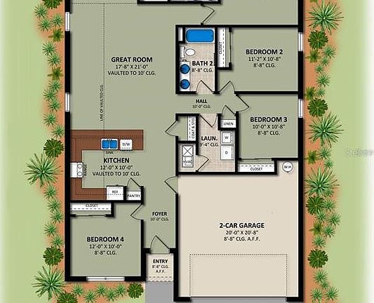Upgraded quartz countertopsExpansive oversized barSpacious florida roomCeramic plank flooringVaulted ceilingMoen genta chrome faucetsFlorida friendly landscaped yard