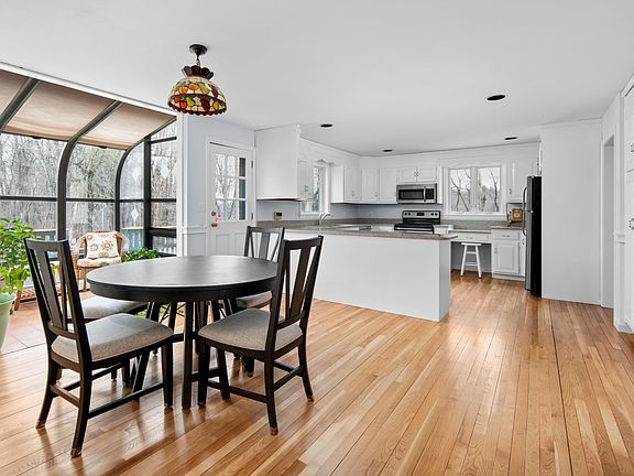 Nestled on a picturesque 5-acre lot, this delightful Bow Cape blends classic charm with modern comfort. Featuring 3 bedrooms and 1.5 baths, the home showcases newly finished hardwood floors and freshly painted rooms. The sun-drenched greenhouse is a true highlight, capturing east to west light and overlooking the scenic backyard that borders peaceful woodlands. Inside, the open-concept great room boasts a wood-burning stove, seamlessly connecting to the kitchen and dining area. Step out onto the expansive deck, perfect for entertaining or enjoying nature’s beauty. A separate formal dining room provides additional space for gatherings. The walk-out basement offers an incredible bonus area, thoughtfully designed for all ages. It includes a dedicated craft space with a sink, a climbing wall for little adventurers, a chalkboard wall for creative expression, and a workout area for the whole family. Step outside to the raised garden beds, ready for your green ambitions. The shed provides additional storage for your outdoor tools. With 40 acres of conservation land abutting the property to the west, this home offers privacy, tranquility, and a truly special setting. Open Houses Sat 2-4, Sun 2-4