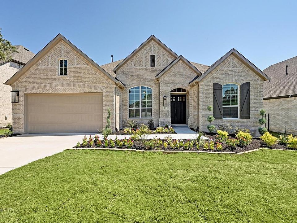 Built by Highland Homes - READY NOW! Experience exceptional Hill Country living in this beautifully upgraded Highland Homes 213 plan, located at 134 Leaning Rock Ridge in the prestigious Parten community. This thoughtfully designed single-story home offers 2,862 square feet of elegant living space with 4 spacious bedrooms, 3 full baths, a private study, and a 3-car tandem garage with an upgraded 16’ garage door for added convenience and curb appeal. The open-concept layout centers around a grand family room featuring a floor-to-ceiling fireplace, seamlessly connected to a chef’s kitchen adorned with designer cabinetry, quartz countertops, a built-in hutch, and a large center island perfect for entertaining. The extended primary suite is a true retreat, complete with oversized windows, a spa-like bathroom with a freestanding soaking tub, separate vanities, and an expansive walk-in closet. Secondary bedrooms are generously sized and positioned for privacy, while the dedicated study provides the ideal space for working from home or learning. A must see!