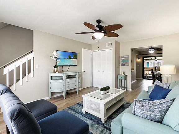This charming townhome is filled with natural light and features two spacious en-suite bedrooms plus 2 and a half baths, updated flooring, a remodeled primary bath, in-unit laundry and a screened lanai to enjoy the Florida breeze. This home offers two assigned parking spaces, 2024 water heater, 2017 Air Conditioner, a new roof in 2024 and impact windows and doors for peace of mind. Sold furnished, it’s move-in ready – perfect for full-time living, a vacation retreat or a smart investment (with up to 12 rentals per year). Residents enjoy access to Marco Island’s exclusive Resident’s Beach a short distance away! Newly updated sparkling community pool and hot tub. This residence faces east and west. Enjoy nearby amenities including Tennis/Pickleball center, YMCA and our beautiful Mackle Park with a dog park for your fur baby! Location is everything and San Marco Villas has a high ground elevation making it safer from potential flooding. Centrally located for your grocery shopping needs, fabulous restaurants and great shopping too! Don't miss your opportunity to own a slice of paradise on Marco Island.