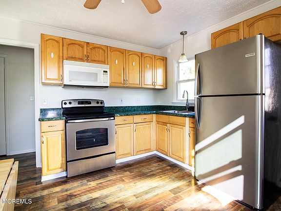 Welcome to your perfect coastal escape! This delightful 4-bedroom, 1-bath Cape-style home is just a short stroll from the local beaches as well as the Sandy Hook National Recreation area. The brand-new bathroom features a custom handmade vanity with white-oak countertop and shelves, porcelain tile, tumbled marble and blue stone accents, vessel sink, and glass shower door. The east-facing eat-in kitchen bathes in morning sunlight, making it the perfect spot for breakfast. Each bedroom features spacious closets for ample storage. The south-facing living room is filled with warm, natural light throughout the day. In addition, you can enjoy a few minute commute to the Sea Streak Ferry. Town also features restaurants, shops and beaches!!! Great location