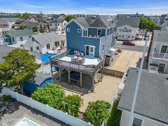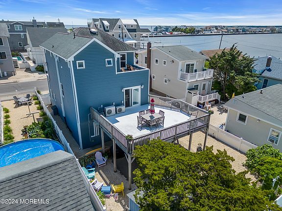Premier bayside two family in desirable Seaside Park with spacious multi-level decks, each with their own distinctive panoramic bay views. Just steps from an alluring bay cove with park benches for spectacular sunset viewing and a playground close by, the home comes FULLY furnished and ready for friends and family THIS summer! Details such as vaulted ceilings, pocket doors, and nearly one thousand square feet of deck/patio space add to the uniqueness of the property. Short walk to the ocean and nearby stores. Lower level is 2 bedroom 1 bath, and upper level is 4 bedrooms and 2 baths.
