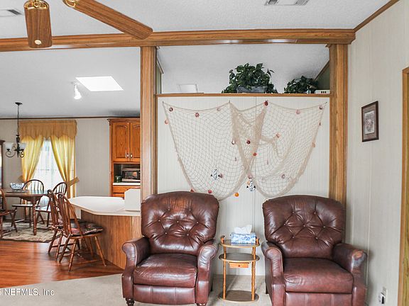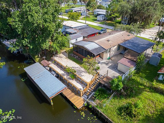 Brand new bulkhead and extended boat house make this stunning 2-bedroom, 2-bathroom double-wide mobile home, located on a canal leading to the river, a one-of-a-kind. Perfectly designed for waterfront living, this property features a fish cleaning station. It has a new 5-ton AC system. In addition, the kitchen boasts custom wood cabinets and new appliances, making meal preparation a delight. Fully furnished, this home is truly move-in ready. As a bonus, a fishing boat complete with a motor and trailer is included, providing you with everything you need to walk in and start living the Florida lifestyle. Relax on the huge, screened porch and new deck that offer breathtaking views of the water and peaceful sunsets. This property embodies the ultimate in waterfront living, making it a must-see! Some images are virtually staged to show potential for new decor(see note on each image).