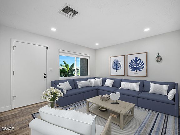 Welcome to this delightful 3 bed, 2 bath beachside retreat that perfectly blends the charm of Old Florida with modern upgrades. Just steps from the beach, this turnkey property is ready for you to move in and enjoy coastal living at its finest! Step inside to discover a cute coastal interior adorned with vintage designer finishes that create a warm and inviting atmosphere. The completely remodeled kitchen and bathrooms feature custom cabinets, high-end fixtures, and beautiful tile work, ensuring both style and functionality. Recent upgrades include a 2022 roof, new gutters, and soffits, along with hurricane impact windows and a sliding patio door for added peace of mind. The 2022 septic system and a brand-new irrigation system (2024) enhance the home's functionality, while a custom built shed (2023) provides additional storage. Enjoy the convenience of luxury vinyl flooring throughout (2022), custom window treatments, and stylish ceiling fans. The home has been freshly painted inside and out in soothing coastal colors (2023) and boasts low-maintenance landscaping (2024) for effortless outdoor enjoyment. Situated in the highly desirable Ormond By The Sea, this gem is a must-see! Don't miss your chance to own this beautifully updated coastal haven! **Some photos have been virtually stages**