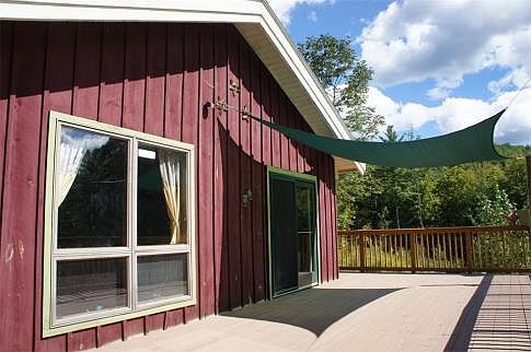 Sweet private home site. Just under 6 acres with wonderful gardens and towering trees. Our Chalet Cape faces South with great windows and slider to the huge wrap deck. Vaulted ceiling in great room with soft wood floors. Two bedrooms and bath up. Walk out lower level with tile for family living. New Rinnai heater, new roof, newer electric, new hot water heater and a great wood stove. 35 minutes to Burlington and an easy commute to Middlebury.
