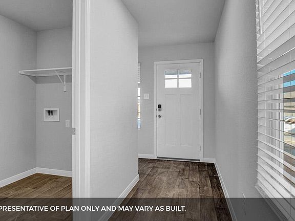 UNDER CONSTRUCTION - EST COMPLETION IN NOVEMBER Photos are representative of plan and may vary as built. Take a look at the Caroline floorplan at Southgrove in Kyle, TX. This single-story home occupies 1,489 square feet, 3 bedrooms, 2 bathrooms, and a 2-car garage. As you enter into the long foyer you walk into the spacious kitchen overlooking the dining area and family room. The kitchen features quartz or Silestone countertops, stainless steel appliances, recessed lighting, and a kitchen island. The private main bedroom, bedroom 1, is located off the family room and includes a huge walk-in closet and walk-in shower. The two secondary bedrooms include carpeted flooring and a closet in each. This home comes included with a professionally designed landscape package and a full irrigation system as well as our Home is Connected base package that offers devices such as a Video Doorbell, Deako Smart Light Switch, a Honeywell Thermostat, and more.
