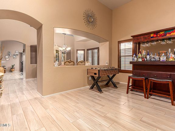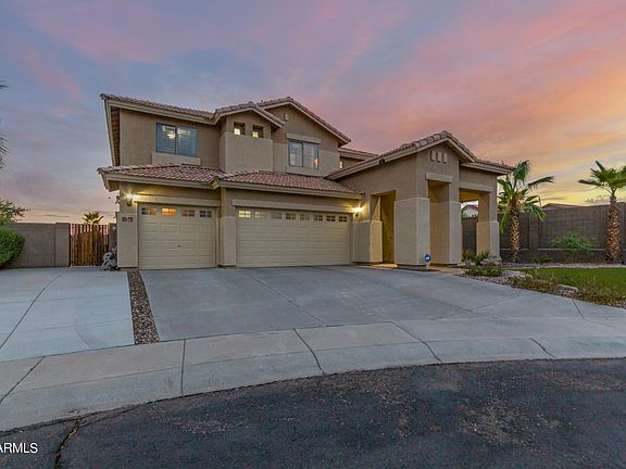 This beautiful two story home in Buckeye showcases 2,615 sq ft, 4 beds, 3 baths, 3 car garage, formal dining, loft w/ built-in entertainment center, open kitchen with granite countertops and stainless steel appliances. Two new ac units, new hot water heater, wood shutters throughout, tile flooring downstairs. The home sits on an oversized cul-de-sac lot 1/4 of an acre with gorgeous views of the desert sunsets. The backyard is a dream with the sparkling pool, putting green, artificial turf, extended covered patio and landscape lighting. The home has fresh interior and exterior paint and additional slab parking for 4 parking spots. Hiking at Skyline Regional Park just 2.5 miles north of property. Located just off of I-10.