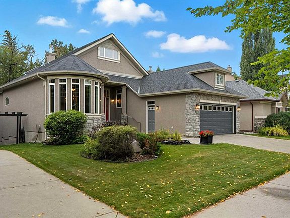 **Open House on Saturday, September 20, from 1-3 pm** Banff in the city… this is how life feels in Discovery Ridge. Tucked along the quiet beauty of Griffith Woods, this exquisite walkout bungalow is a rare find—timeless in its elegance, yet carefully updated with thoughtful, modern touches. From the moment you step inside, the home greets you with soaring ceilings, rich millwork, and warm hardwood that together create a sense of refined luxury. The living room, anchored by a beautiful fireplace, looks out through expansive windows to the forest beyond—a daily reminder that here, peace and privacy are yours. The gourmet kitchen is as inviting as it is functional, with a large island, granite counters, and a bright breakfast nook that catches the morning sun. Just beyond, a formal dining space welcomes gatherings, while a charming main floor office framed by bay windows offers an inspiring place to work. The primary suite completes the main level, its serene outlook onto the trees paired with a luxurious ensuite and custom walk-in closet, making it the perfect retreat. Downstairs, the walkout level extends the living experience with 9’ ceilings, cozy in-floor heat, and a sense of comfort that invites you to linger. A spacious family room flows naturally into a private theatre, with a massive entertainment space. For family or guests, a full second kitchen—complete with oven, dishwasher, refrigerator—offers self-contained convenience. Two generous bedrooms and a large exercise bonus room ensure plenty of space for everyone. This home is as practical as it is beautiful. A new high-grade Vacuflo system has just been added and the garage includes a custom platform for an extra fridge or freezer. Outside, the home is elevated by Gemstone lighting that sparkles year-round, casting a warm glow over evenings spent on the private deck or lower patio. The backyard feels like a retreat, with mature trees creating a natural screen. Through a discreet gate, your own private trail connects you directly to the endless pathways of Griffith Woods—a haven for biking, walking, and quiet reflection. Discovery Ridge is one of Calgary’s most treasured communities: secluded, peaceful, and embraced by nature, yet only minutes to the city’s best amenities. This is more than a home—it is a sanctuary, a gathering place, and a lifestyle, all in one.