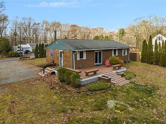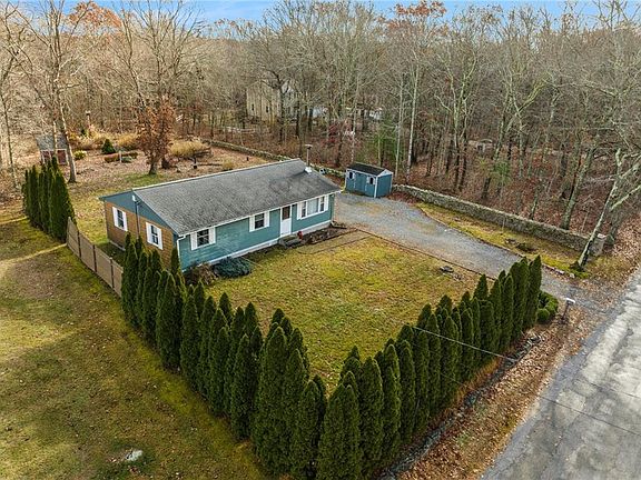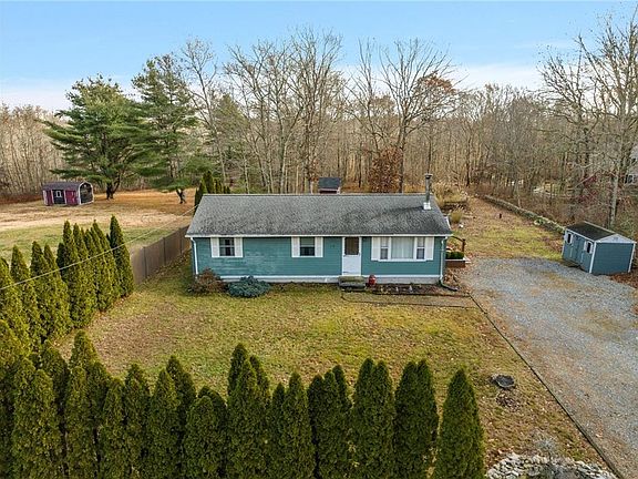 Discover the warmth and charm of 134 North Road, a delightful ranch-style home nestled in the picturesque backroads of Hopkinton, just moments away from Ell/Long Pond Nature Conservancy and the Connecticut border. This inviting residence offers a cozy and well-lit eat-in kitchen with a slider leading to a serene back deck overlooking a nearly one-acre wooded backyard, complete with a convenient shed. The living room is bathed in natural light, featuring large windows and a wood-burning stove, providing both ambiance and supplemental heating. The main level encompasses three bedrooms and a tastefully designed full bathroom with generous cupboard and closet space. One of the bedrooms conveniently houses a washer and dryer, complemented by floor-to-ceiling built-in bookcases. The potential for additional living space awaits in the basement, ready to be personalized to suit your lifestyle. The front yard, surrounded by expansive arborvitaes, adds to the property's private and welcoming ambiance. Perfectly situated for Electric Boat employees, this location offers easy access to beautiful beaches, walking trails, ponds, casinos, and more. Don't miss your chance to transform this charming residence into your dream home. Call today to schedule a viewing and envision the possibilities that await!