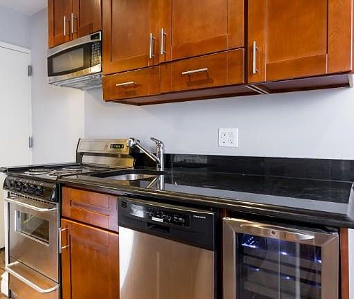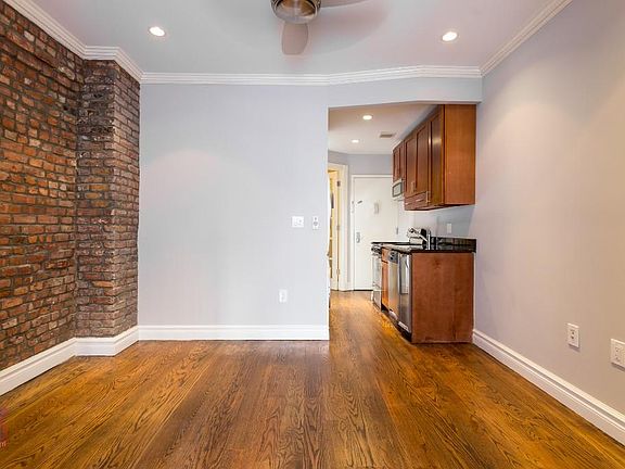 This renovated two-bedroom home on Orchard Street combines modern finishes with the character of the Lower East Side. The apartment features a granite kitchen with stainless steel appliances, including a dishwasher and microwave, and a marble bathroom with sleek, clean design. Hardwood floors, exposed brick, and high ceilings add warmth and charm, while the convenience of an in-unit washer and dryer and a wine cooler make it an ideal space for entertaining and everyday living. Ample closet space throughout ensures functionality without sacrificing style.
