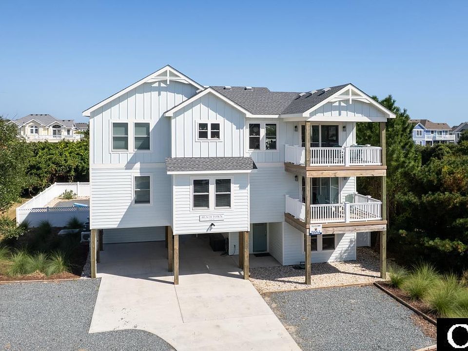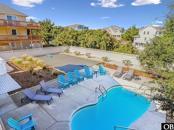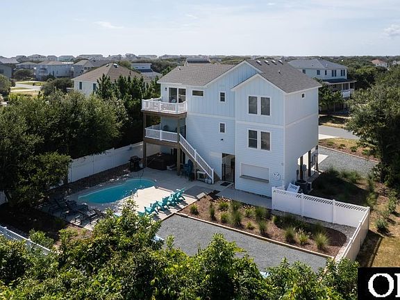 Better than new construction—this Kenny Reid–built masterpiece, completed in 2023, offers the rare opportunity to enjoy a home that’s less than two years old without the stress, delays, or expense of building. Every detail has already been perfected for you, combining quality craftsmanship with thoughtful design inside and out. The home features a bright and spacious reverse floor plan with two primary bedrooms on the top level and four additional en-suite bedrooms on the mid-level, ensuring comfort and privacy for everyone. Step inside and you’ll immediately notice the fresh, modern beach décor—charming, welcoming, and effortlessly stylish. The expansive great room offers vaulted ceilings, abundant natural light, and plenty of space for everyone to relax. The open-concept kitchen is a showstopper with sleek stainless appliances, a large island for gathering, a dedicated coffee bar, and a gorgeous tile backsplash that adds a touch of coastal flair. Downstairs, the fun continues in the rec room featuring foosball, shuffleboard, a mounted TV, and a convenient half bath—perfect for rainy days or post-beach hangouts. The outdoor living is amazing! Enjoy your own private paradise with a sparkling pool, hot tub, bar area with refrigerator and seating, and an oversized fenced-in backyard complete with custom landscaping, corn hole, and plenty of room to relax or play. Additional upgrades include insulated floors and ceilings for enhanced comfort and soundproofing, plus a commercial-grade WiFi system with each room individually wired—ideal for guests who need to stay connected. Located just a short stroll from the beach and right in the heart of Duck, you’re minutes from local dining, boutique shopping, and all the charm this vibrant coastal town has to offer. Whether you're looking for a top-tier rental or a personal retreat, this home checks every box!