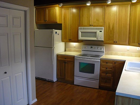 These duplex units were originally built to be sold as condominiums, and thus are large and spacious. The townhouses have open beam ceilings in the lower level, and cathedral ceilings in a very large master bedroom. The rambler style has cathedral ceilings in the living room. Both styles have inside utilities, 1.5 baths, bay windows, garden windows, fireplace, dishwasher, and single car garages. They also have vinyl double pane windows and vertical blinds. The garage doors are new and have an electric garage door opener. Best of all, the yard work is all taken care of by a professional landscaper, so there's no lawn to mow or weeds to pull. We pay for the water, garbage and sewer, while the tenant is responsible for paying the electricity, telephone and cable. All require a $47 credit check. One small pet is okay with a $1000 refundable pet deposit.