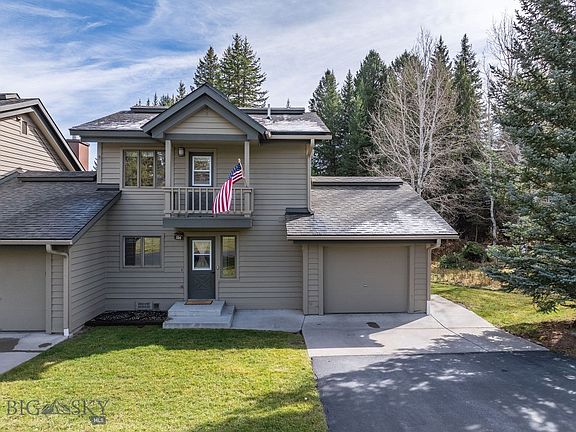 Tucked quietly into the trees on a scenic hillside, Hidden Village offers the perfect blend of privacy and convenience just minutes from all the amenities of Big Sky. This charming 2-bedroom, 2-bath condominium features an attached single-car garage and a desirable end-unit location. The expanded deck backs to the hillside, providing extra space and a serene, private setting. The spacious primary suite occupies the loft level, complete with an ensuite bathroom and a private balcony. The second bedroom is on the main level and utilizes an armoire as a closet. Natural light fills the home through large windows that invite the outdoors in, while a cozy gas fireplace adds warmth and ambiance on cool mountain evenings. Enjoy being just moments from the vibrant Town Center which is home to shopping, dining, and entertainment, yet surrounded by the tranquility of the forest. Walk to Lone Mountain Ranch’s 80 km of groomed Nordic trails or take a short drive to the world-class skiing at Big Sky Resort.