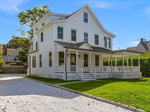 Welcome to 134 Rowayton Ave, nestled in the heart of Rowayton village. This exquisitely restored historic home beautifully merges the timeless charm of Victorian architecture with the modern comforts of new construction. The main residence offers three expansive floors of living space, featuring an oversized chef's kitchen and an open floor plan that seamlessly integrates the living and dining areas. Additionally, the main floor includes a practical mudroom and convenient back door access. On the second floor, you'll find a luxurious primary bedroom complete with an oversized closet and a sumptuous bath, alongside a second bedroom with its own ensuite bath. For added convenience, the laundry facilities are also located on this floor. The third floor presents substantial extra space, complemented by two more bedrooms and a bath. A unique spiral staircase ascends to a widow's walk, offering views of 5 Mile River and the entirety of Rowayton. A rare find in Rowayton, the property includes a two-car garage with a legal ADU apartment above. This apartment is thoughtfully designed with a full kitchen, living room, bedroom, and bath. The meticulously planned landscaping features a classic stone driveway, a tall privacy hedge along the left boundary, and a spacious side yard adjoining Vincent Place. This rental price includes the main house and 1 garage bay. Please inquire if also interested in the ADU and 2nd garage, that is an option for additional rent.