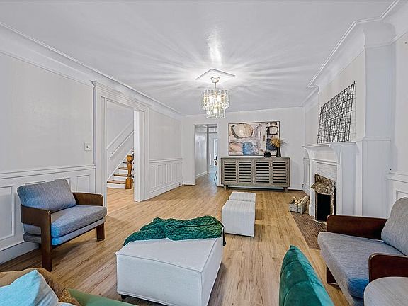 134 Rutland Road is a 4,040 square foot, five-bedroom, three-bath, three story crown jewel which sits on one of the most beloved blocks within the historic Prospect Lefferts Gardens. The tree-lined block, both leafy and magnificent, is a marvel of ecological design. Built in 1910 as a luxurious one unit, the home has well preserved the classic Romanesque charm that the turn of the century architects creatively imagined. It boasts an ideal layout and has an intuitive flow. The combination of the characteristic façade details of sandstone and brownstone, pristine skylights, ornate detail, and crown moldings, classically inspired by the Neo-Renaissance period, set this gem apart. The grand entrance of the parlor floor opens to a six-foot-wide receiving foyer, soaring 10-foot ceilings, fabulously hand-carved all wooden newel post, and wainscoting. Additional wooden details, including four intricate fireplaces and mantels, are gloriously intact. On this level sits a twenty-four-foot formal rear parlor with bay windows and a decorative wooden encased bookshelf. Two spacious sitting rooms to the front add dimension and enhance the floor perfectly as an office, media room or two (2) additional bedrooms. On the garden level, once you descend the picturesque staircase, you enter an elegant family room perfect for hosting festive holiday gatherings. This room flows into a dining room and a large, spacious kitchen with stainless steel appliances. Just beyond the kitchen is the solarium with southern exposure which is ideal for morning tea, a good book, or a mindless Sunday brunch gaze upon your large backyard patio oasis. Throughout the home, pristine inlaid parquet flooring on the parlor and third level are original and authentic. The third level boasts the two larger bedrooms which connect using the early 20th century designed passthrough with dressing closets. Two smaller rooms are positioned optimally adjacent for use as a nursery, computer room or home gym, whichever best suits your style. In addition to these three spacious floors there is a fully renovated open concept basement that is superb as a recreational space, home theater, children’s play area or simply extra storage -you can do it all from within the confines of your own home. Whichever design choices you employ, this enormous and enchanting home is ready for your vision to take center stage! Whether you crave a relaxing stroll in the park, a lively bar, a delightful dining experience, a quick coffee, or a quiet evening at home this neighborhood has it all. - Welcome to 134!